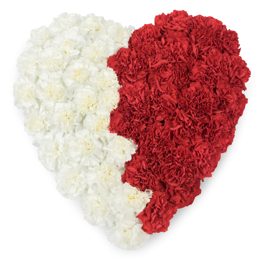 Celebrate heartfelt moments with our luxurious mixed carnations bouquet. This beautiful heart-shaped design combines pure white and vibrant red carnations, making it an ideal choice for expressing sympathy with style.